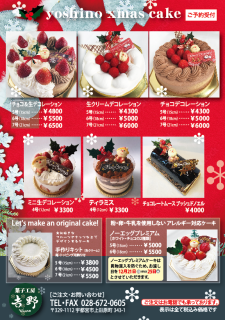 クリスマスケーキのご予約受付始まりました。